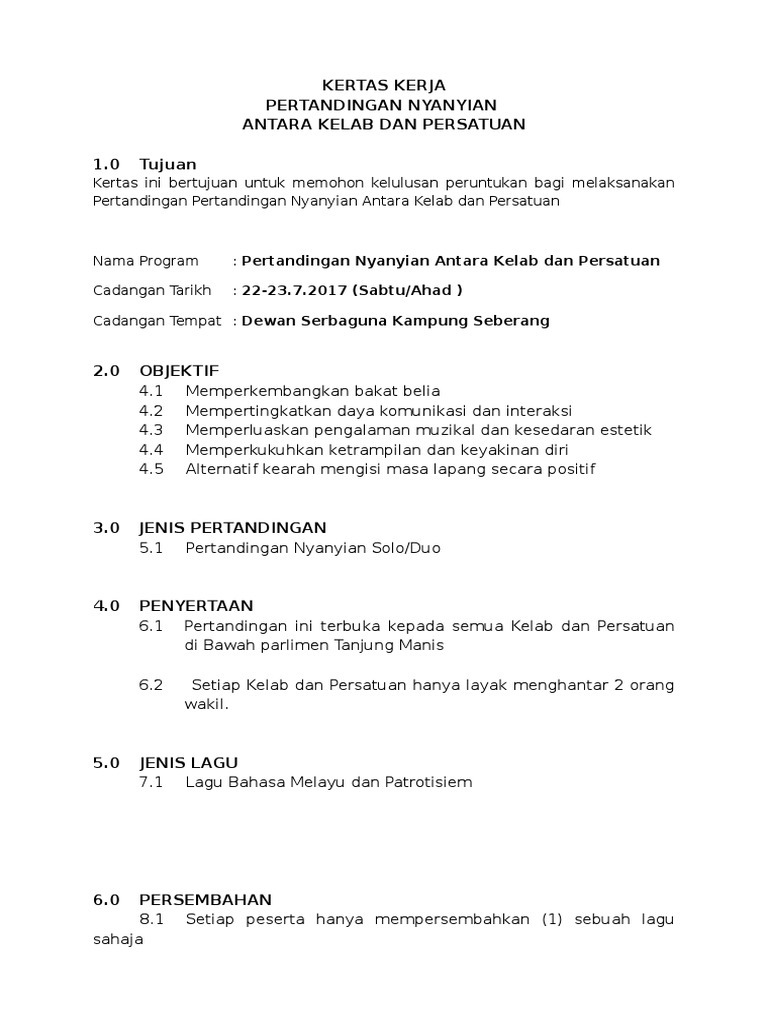 Contoh Kertas Kerja Pertandingan Nyanyian